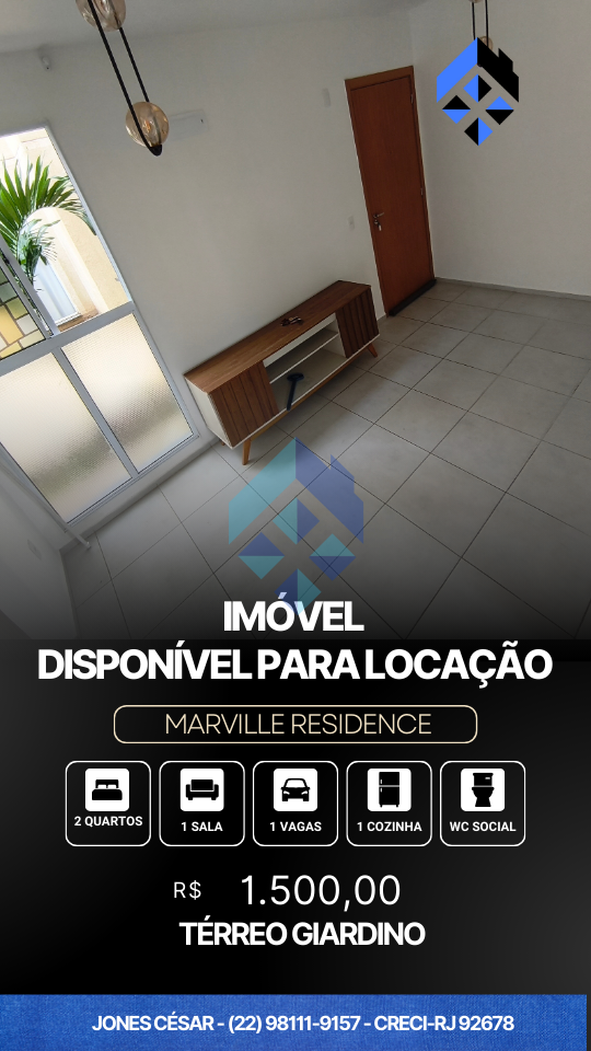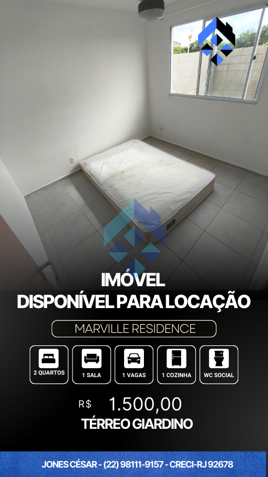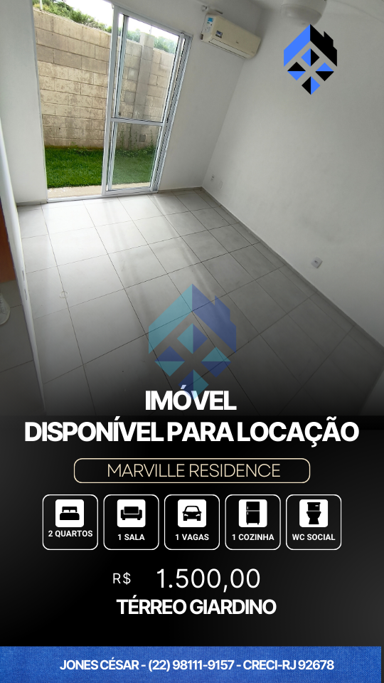 Incrivel imovel disponivel no Marville, condominio com total segurança, portaria 24 horas + cerca elétrica, garagem para um carro e uma moto, uma brisa constante pela proximidade ao mar e lazer completo com Piscina, equipamentos de exercícios, espaço Kids, Espaço Gourmet e muita tranquilidade pra você e famiia viverem bem! proximo ao NUPEN UFRJ , proximo ao atacadão, proximo a escola e postinho de saude, um lugar pra quem quer morar bem.